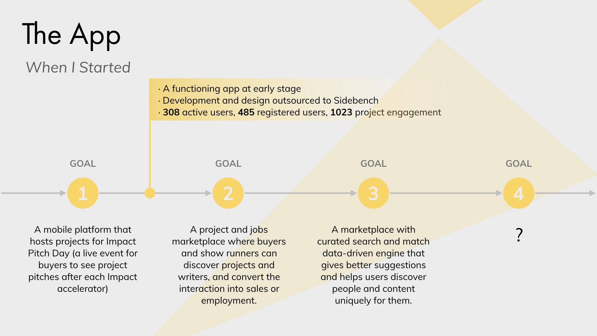 Impact outsources its app development and design to Sidebench originally; I learned about the granular details of each development "Spring" process and the balancing act our side and Sidebench's PM constantly performs to maintain business operations, short term goals and long term sustainability