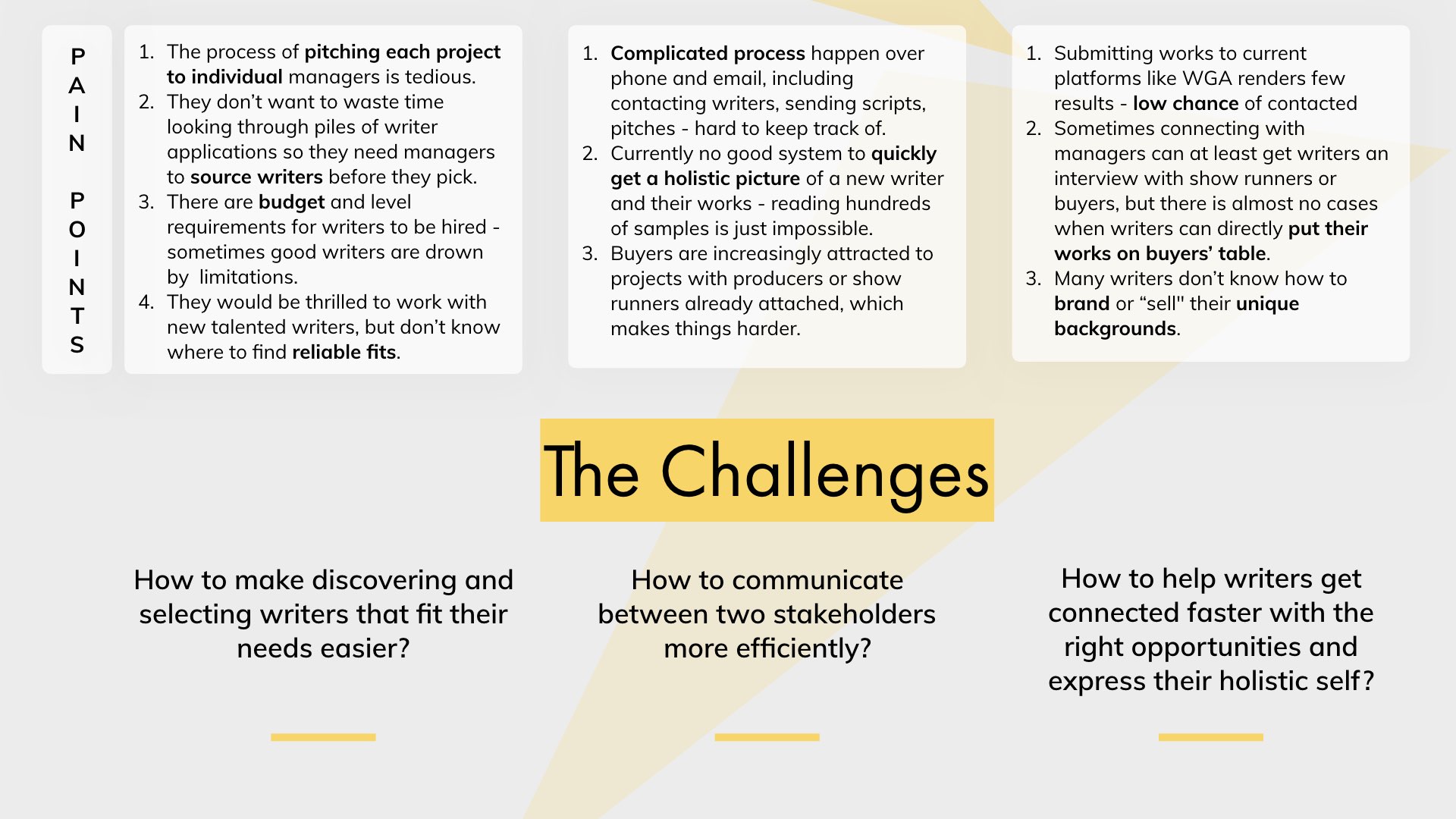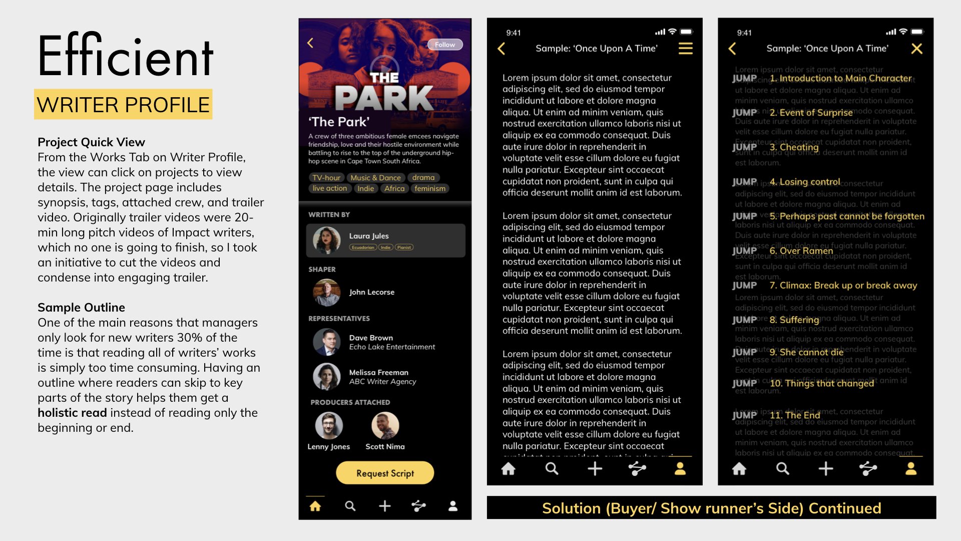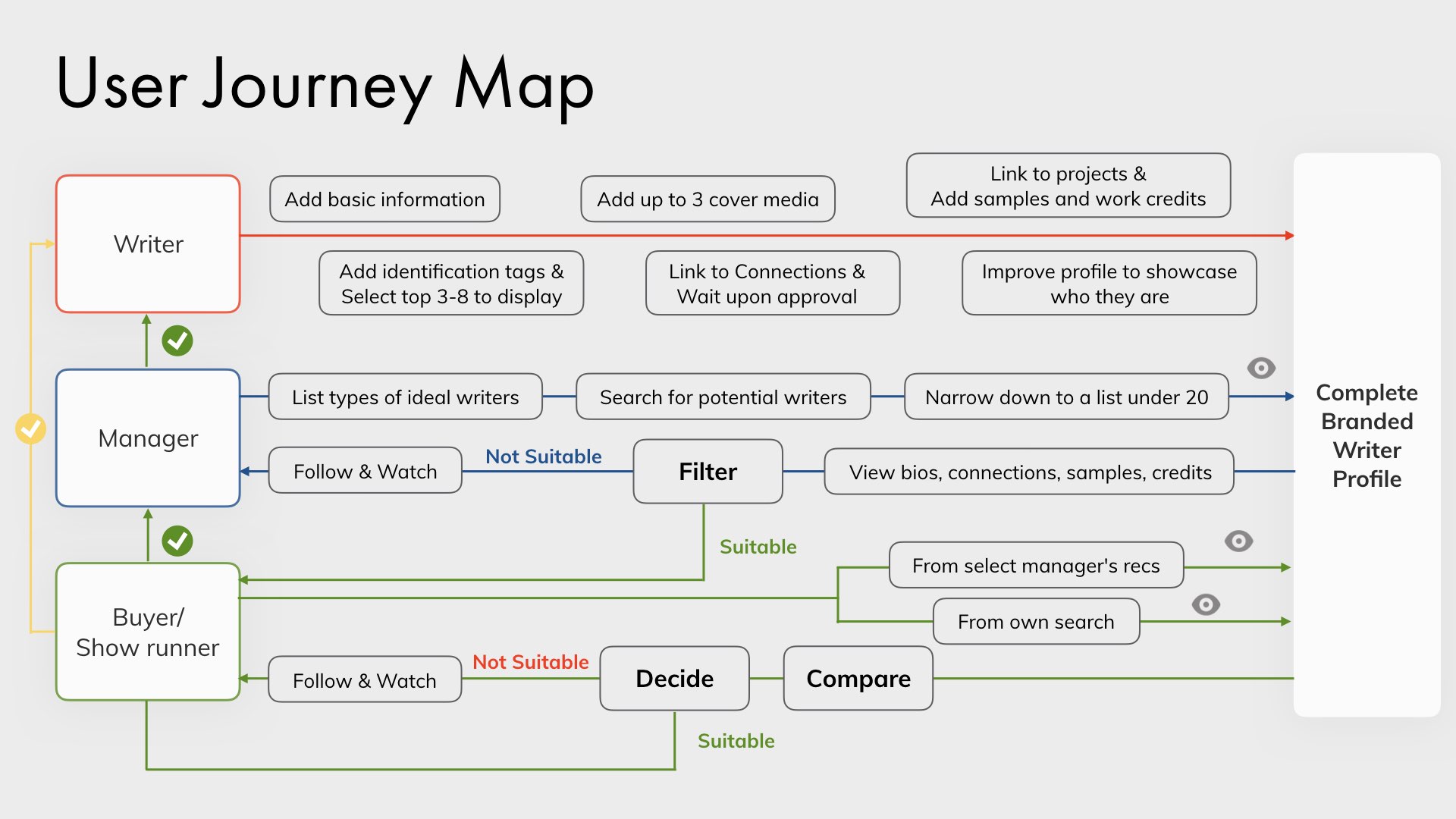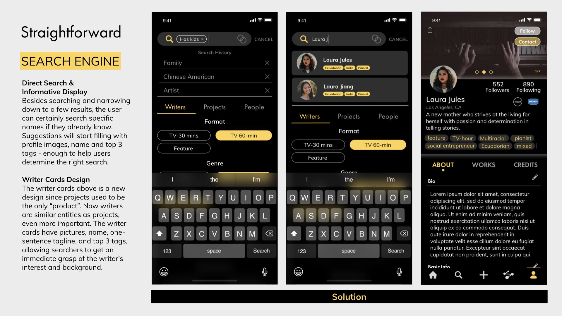 Be proactive and take initiatives at all times - initially I was outside the loop for anything related to their new app, but I was most interested in the app development, so I audited all clients meetings and asked to join all app meetings, as well as created the Writer Profile UIUX mockups after gathering insights. I then presented my concepts to the board of directors during PM meeting with Sidebench - they graciously approved my designs and claimed it was "way better than Sidebench" and they'd "want to have what I designed as the app". From then on, I was always asked to join any discussions regarding the app and pitch in ideas
